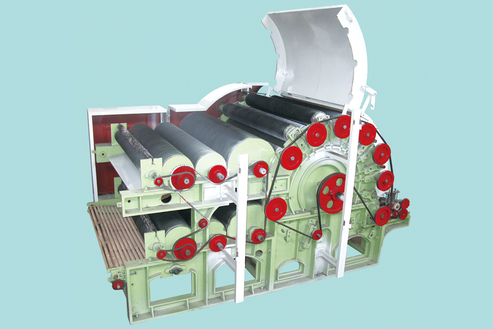 適應(yīng)1.5~20Dx38~65mm人造纖維梳理。單錫林高速梳理,雙道夫出棉,產(chǎn)量高;采用剝毛羅拉剝棉;喂棉羅拉變頻傳動。